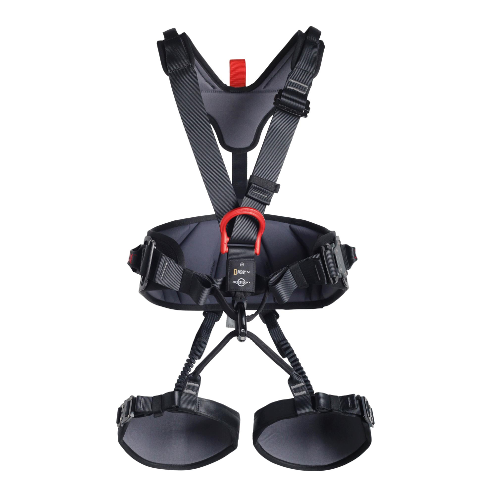 - Точки крепления для защиты от падения EN 361: красная текстильная на спине и красное алюминиевое D-кольцо спереди. Передняя точка расположена ниже обычного уровня и интегрирована в систему Motion System, что позволяет использовать её и для позиционирования без ограничения движений.