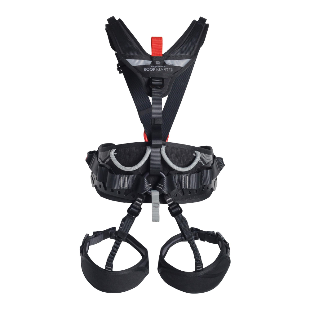 Страховочная система Roof Master — идеальный выбор для работы на крышах и других наклонных поверхностях, обеспечивающий свободу движений благодаря уникальной системе Singing Rock Motion System. С помощью открывающейся передней точки крепления можно легко подключать грудной жумар или отсоединять плечевые лямки, превращая полную систему в сидячую страховку по необходимости.
