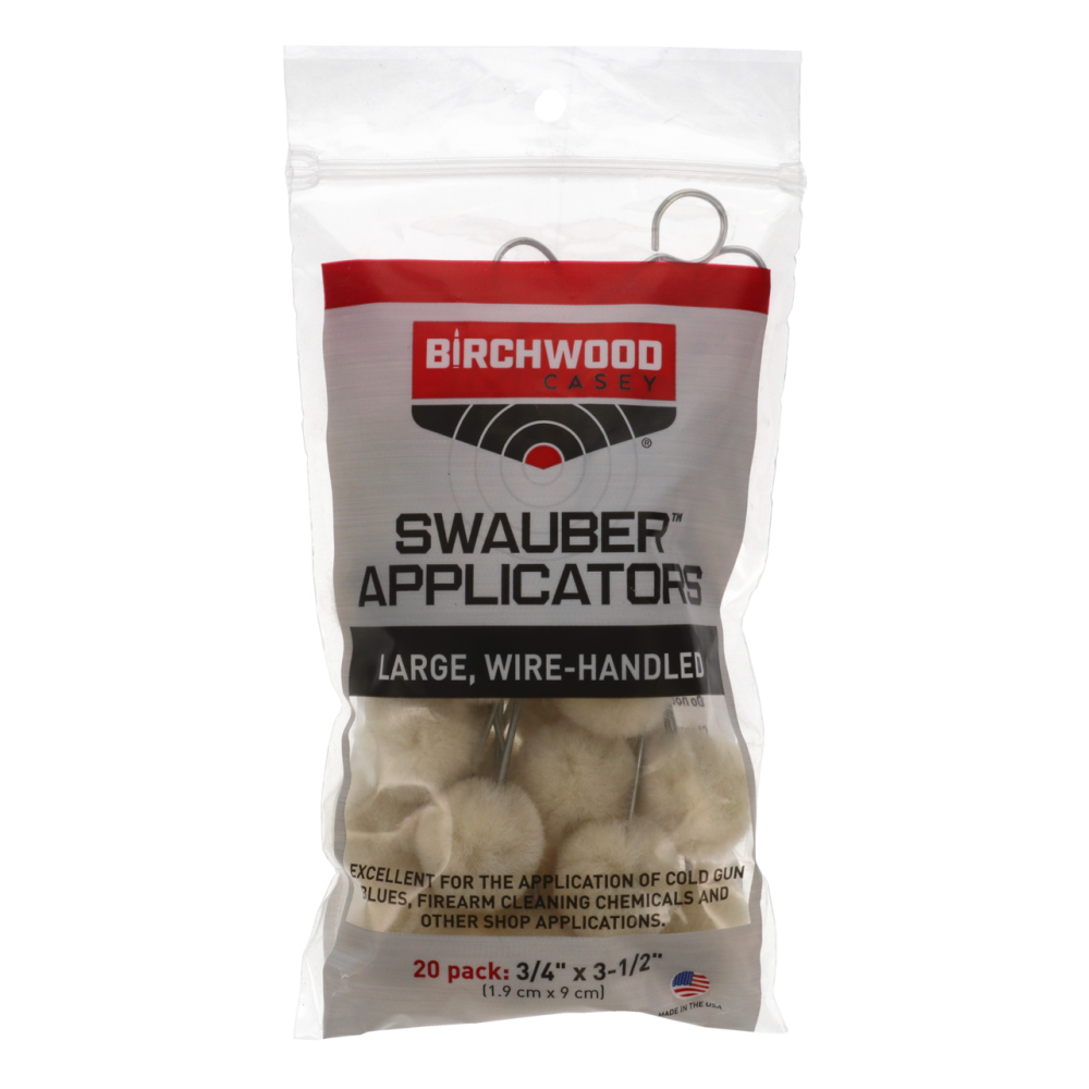 Апликаторы Swauber™ — незаменимый инструмент для любого набора в мастерской или на рабочем столе. Используйте их для нанесения средств для воронения, таких как Plum Brown™, Perma Blue® Gun Blue и Super Blue® Gun Blue. Также подходят для нанесения любых чистящих средств для оружия, включая Bore Scrubber® 2-in-1 Bore Cleaner, Barricade® Protectant и RIG® Rust Protectant. Для любой задачи, где требуется нанести жидкое средство, Swauber™ — идеальный инструмент!
