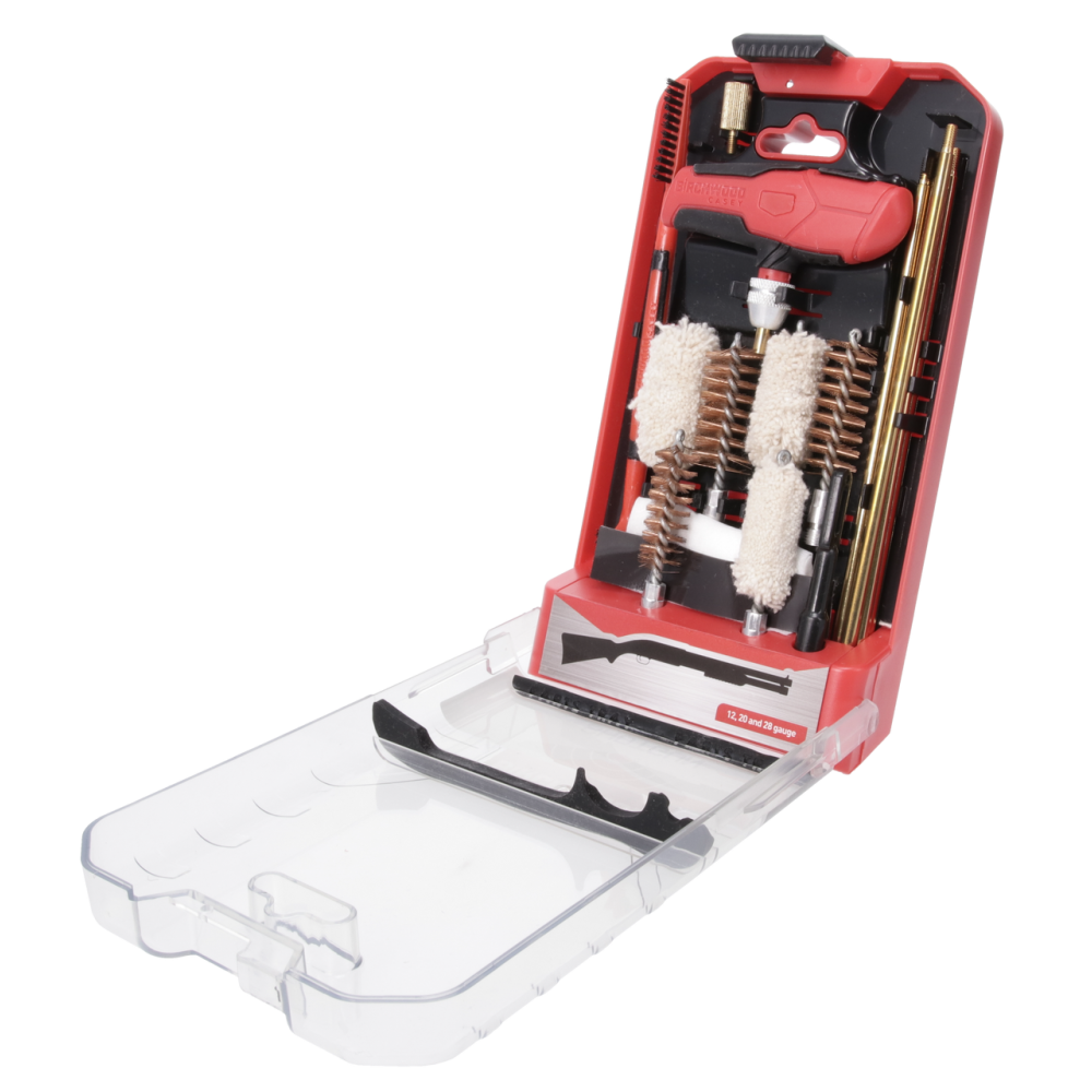 Комплексный набор для чистки Shotgun Cleaning Kit включает специальную рукоятку для удобства и простоты использования. В него входят двухсторонняя нейлоновая щётка, пятисоставной латунный шомпол и крупная насадка с прорезью для универсальных вариантов чистки.