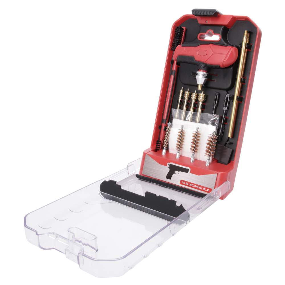 Универсальный набор Handgun Cleaning Kit для чистки пистолетов из 16 предметов разработан для эффективности и универсальности. В набор входит специальная рукоятка с фиксирующим патроном, которая надёжно удерживает инструменты во время чистки. Инновационный дизайн кейса позволяет одновременно демонстрировать и защищать инструменты, обеспечивая лёгкий доступ и безопасное хранение.