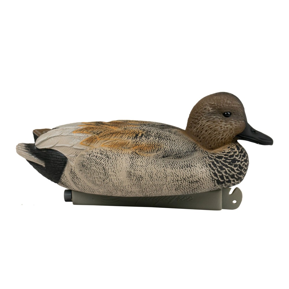 Чучела Flight Gadwall Decoys отличаются высокой детализацией и проработкой окраски, выгодно выделяясь на фоне аналогов других производителей. Каждое чучело выполнено с реалистичным оперением периода миграции, где сочетаются характерные для вида цвета и естественные переходы оттенков, точно передающие внешний вид живых птиц. Благодаря прочной конструкции и проверенному временем утяжелённому килю Tanglefree, чучела устойчиво держатся на воде и создают естественные движения. Незаменимы как для добавления разнообразия в расстановку речных уток, так и для охоты, специально ориентированной на свиязь.