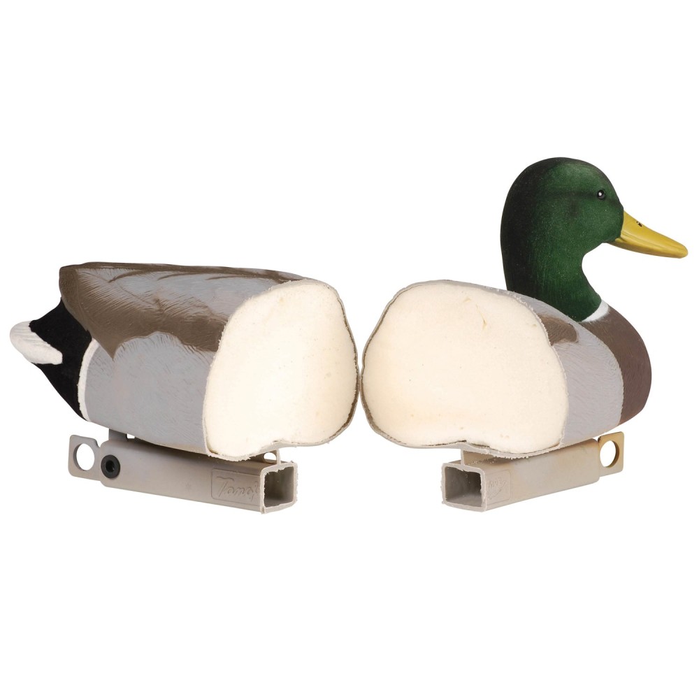 - Флокированные головы и хвосты: мягкое бархатистое покрытие значительно снижает блики и добавляет реалистичности, делая чучела более привлекательными для пролетающих уток.