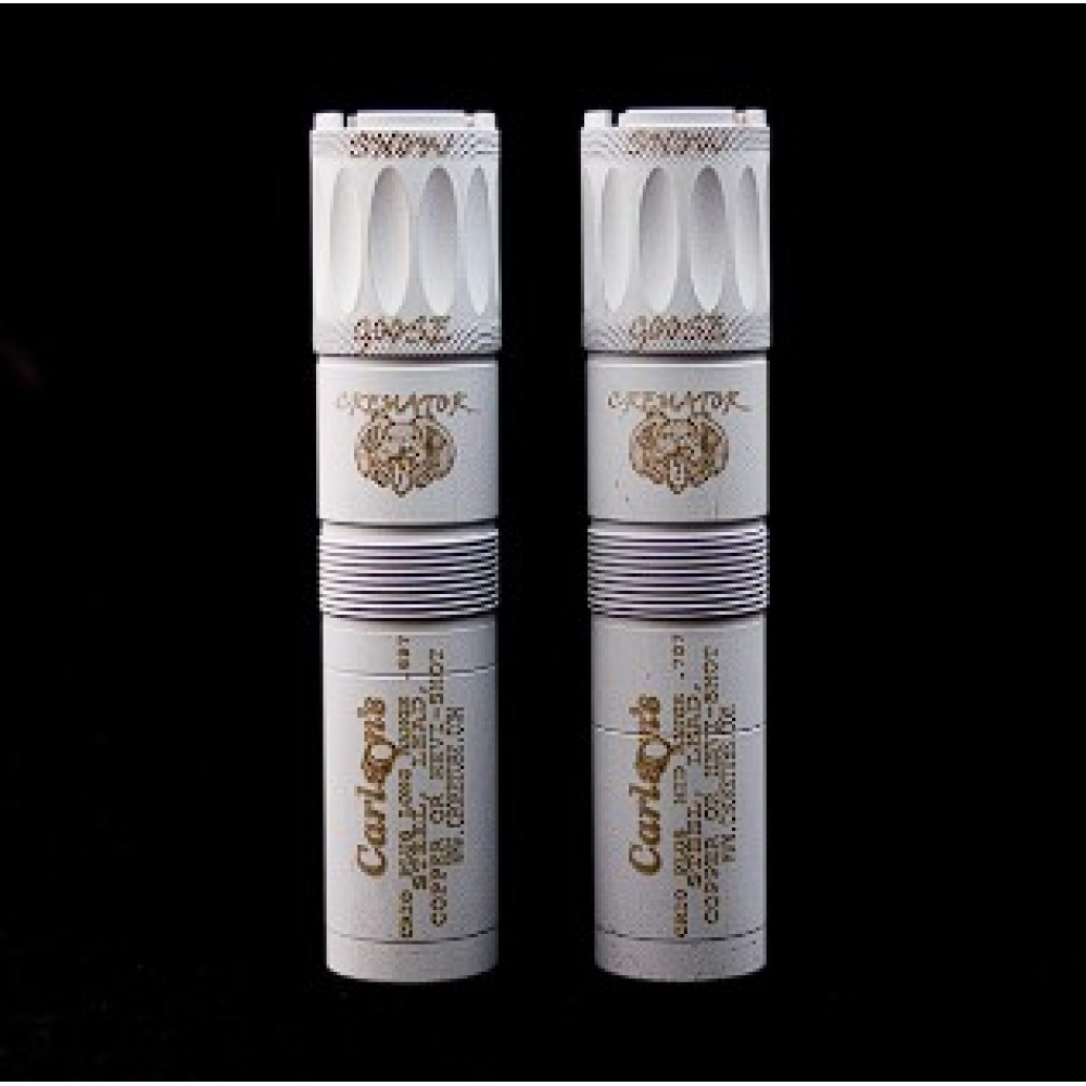 Чоки Carlson’s Cremator оснащены нашей новой технологией Triple Shot Technology (TST) и доступны в вариантах для ближней, средней и дальней дистанции стрельбы. TST представляет собой систему из трех ступенчатых колец в конической части чока, обеспечивающих более плавный переход от канала ствола ружья к конечному сужению. Такая конструкция снижает деформацию дроби, уменьшает количество отклоняющихся выстрелов и делает осыпь более плотной. Эти преимущества делают чоки серии Cremator® чрезвычайно эффективными при стрельбе по всем видам водоплавающей дичи в течение всего сезона.