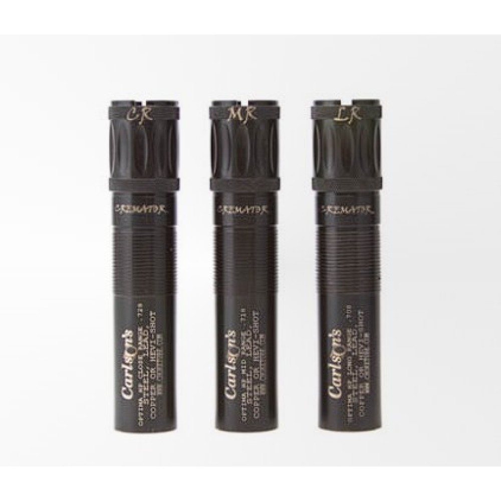 Чок-тюбы Carlson’s Cremator оснащены нашей совершенно новой технологией Triple Shot Technology (TST) и доступны в сужениях для ближней, средней и дальней дистанции. TST представляет собой серию из трех ступенчатых колец в конусной части чок-тюба, которые обеспечивают более плавный переход от канала ствола ружья к конечному сужению. Такая конструкция обеспечивает уменьшение деформации дроби, сокращение количества отклоняющихся дробин и более плотное осыпание. Эти преимущества делают серию Cremator® чрезвычайно эффективной для всех видов водоплавающей дичи в течение всего сезона.