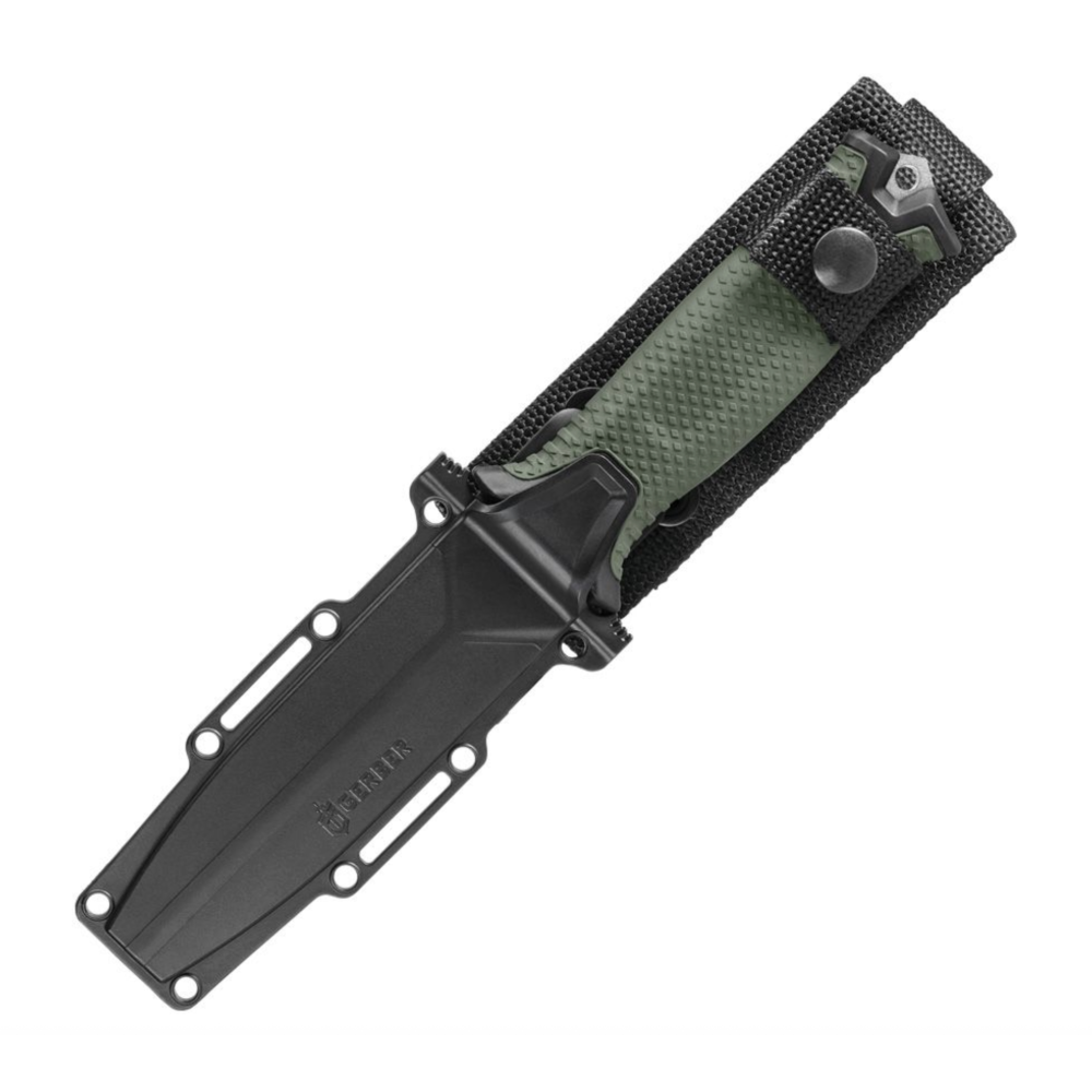 Компания Gerber делала ножи для выживания для вооруженных сил США с 1968 года. StrongArm Fixed Blade – это все так же прочные ножи с фиксированным лезвием для боевых заданий и выживания. Нож был разработан с учетом принципов обучения выживания в армии. Оснащен гладким лезвием, полноразмерным клинком из стали 420HC с черным керамическим покрытием. Прорезиненная текстурированная рукоятка обеспечивает надежное сцепление в любых условиях.