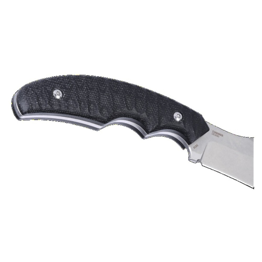 Рукоять из микарты с текстурой «мешковина» (burlap) приятна на ощупь и не скользит. Этот материал сохраняет цепкость даже в грязи или под проливным дождем. Накладки не натирают ладонь при долгой силовой работе.