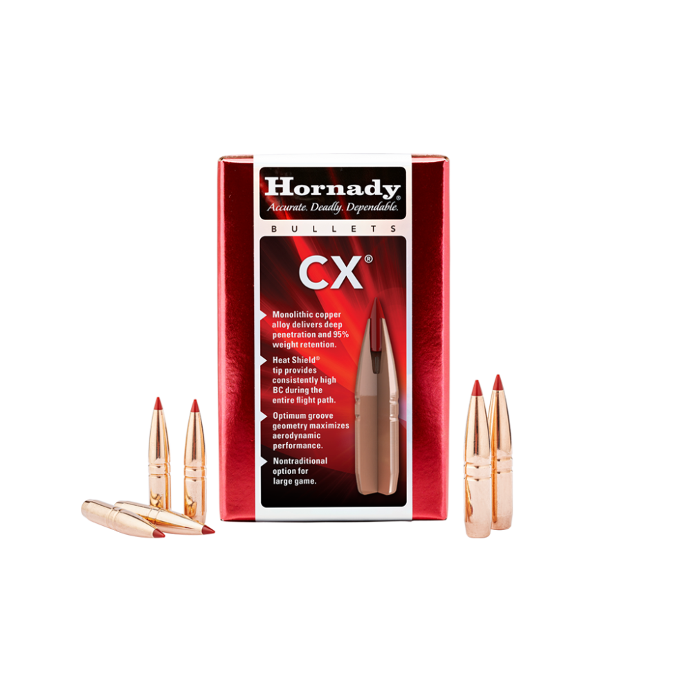 Пуля CX® (Copper alloy eXpanding) от Hornady представляет собой самую современную монолитную охотничью пулю на рынке. Её оптимизированная конструкция обеспечивает эффективную работу на больших дистанциях, повышенную точность, высокое сохранение массы и глубокое проникновение.