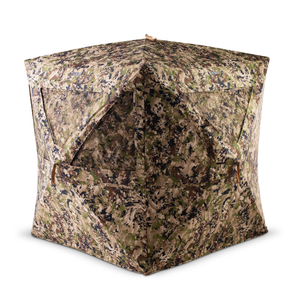 Совершенно новая засидка имеет камуфлированный внутренний слой, позволяющий оставаться скрытым без необходимости надевать обычное чёрное худи, одновременно устраняя эффект «чёрной дыры», которая выглядит неестественно в лесу.