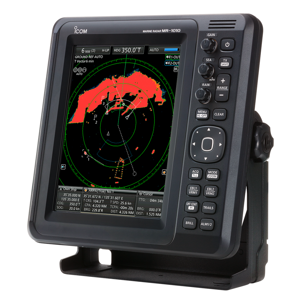 Морской радар Icom MR-1010RII – 4 кВт, 10.4" цветной дисплей – простая ARPA, широкоугольный цветной TFT LCD и надёжность «Сделано в Японии». Наблюдение на дистанции до 36 NM с излучателем 4 кВт.
