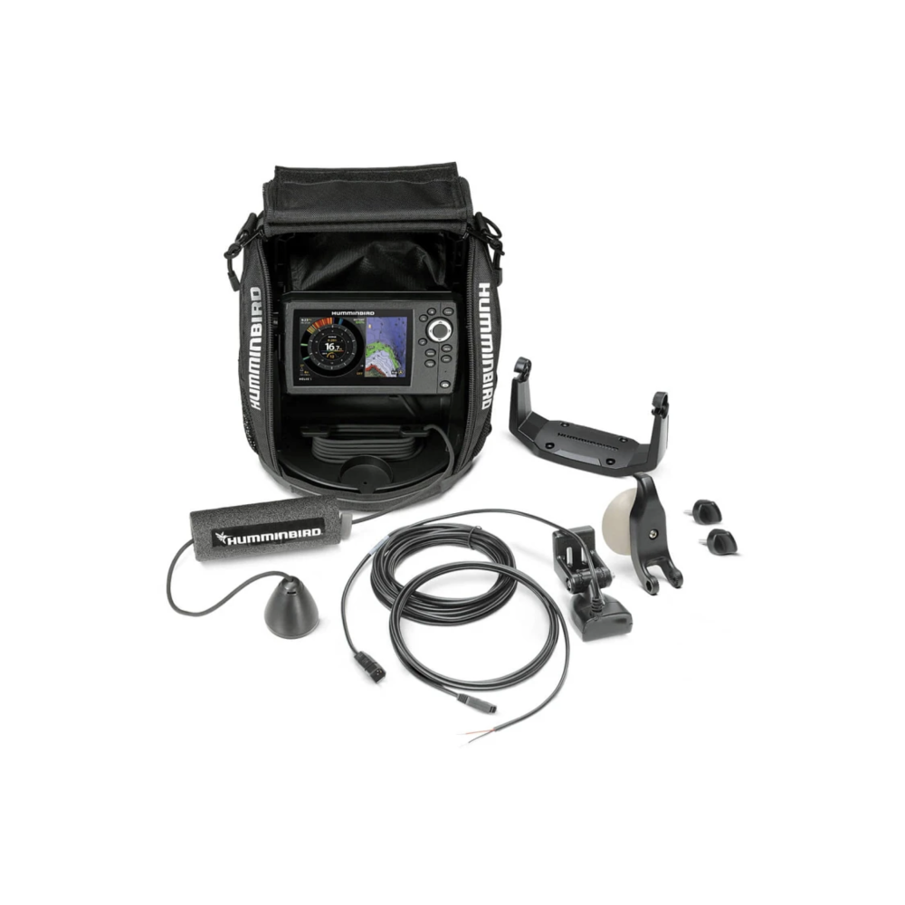 Комплектация: эхолот ICE HELIX 5 CHIRP GPS G3, ледовый датчик Dual Spectrum CHIRP ICE, аккумулятор 9 А·ч и зарядное устройство, ICE-платформа (shuttle), кабель питания и крепеж, портативная сумка, все необходимые аксессуары для использования на лодке или портативно (транцевый датчик CHIRP с дополнительным креплением на присосках, поворотное крепление для эхолота, кабель питания).