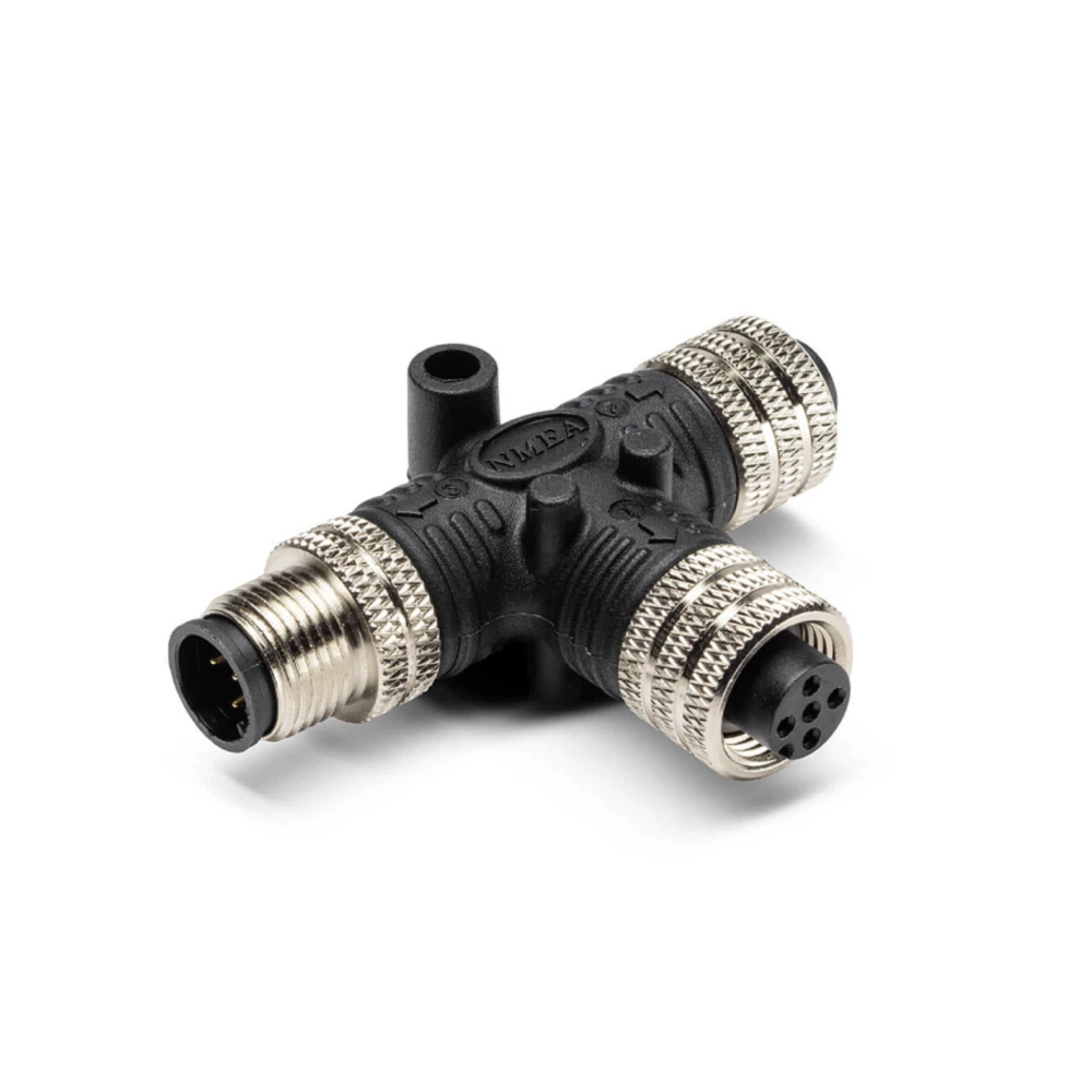 Этот T‑образный соединитель NMEA 2000 обеспечивает соединение между ответвительными кабелями (drop cables) и магистральными кабелями (backbone cables) сети NMEA 2000.